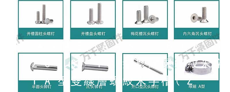 不同點(diǎn):1、自攻螺釘?shù)穆萁z一般為機(jī)螺紋,而 自擠螺釘采用自攻螺紋。2、在扳擰方式中, 自擠為確保高速自動(dòng)采用了裝配扳手,而自攻螺釘采用開(kāi)槽。螺釘型號(hào)如下:(1)十字槽盤(pán)頭自攻螺釘:GB/T6560,ASME B18.6.4,SAE G:代表55度圓柱管螺紋,11/4:代表管內(nèi)徑尺寸11/4英寸。在圓柱或圓錐表面上,沿著螺旋線所形成的具有規(guī)定牙型的連續(xù)凸起。凸起是指螺紋兩側(cè)面的實(shí)體部分,又稱(chēng)牙。在機(jī)械加工中,螺紋是在一根圓柱形的軸上(或內(nèi)孔表面)